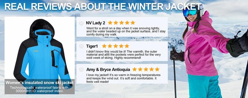 Women's Waterproof Ski Suit with Hood and Fleece Lined Warm Winter Outerwear